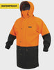 El traje Skye se entrega como una mezcla estándar de naranja y negro, pero para pedidos múltiples se puede hacer en un solo color sólido naranja o negro, con o sin cintas retrorreflectantes.